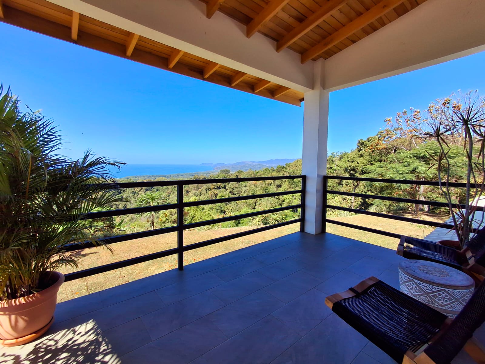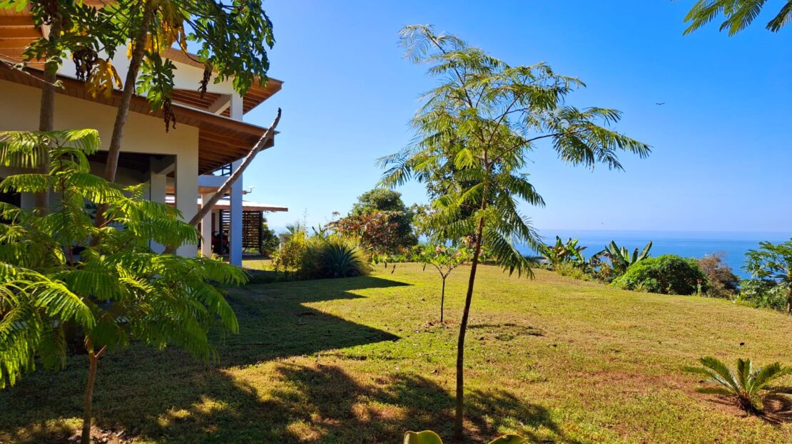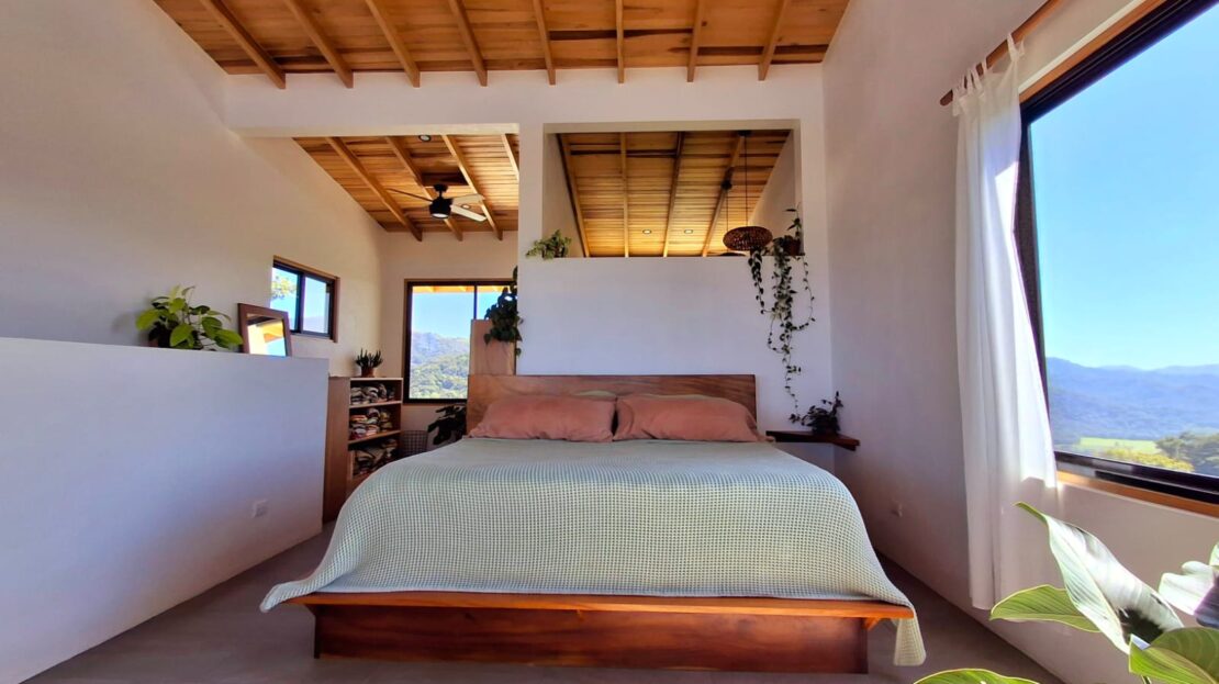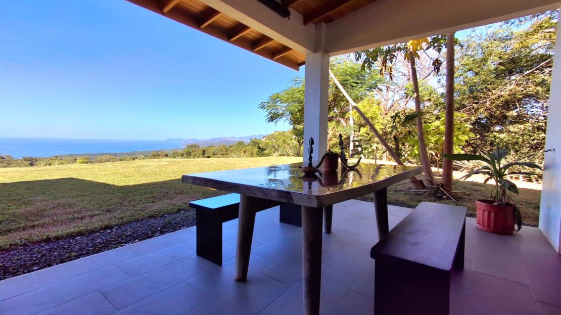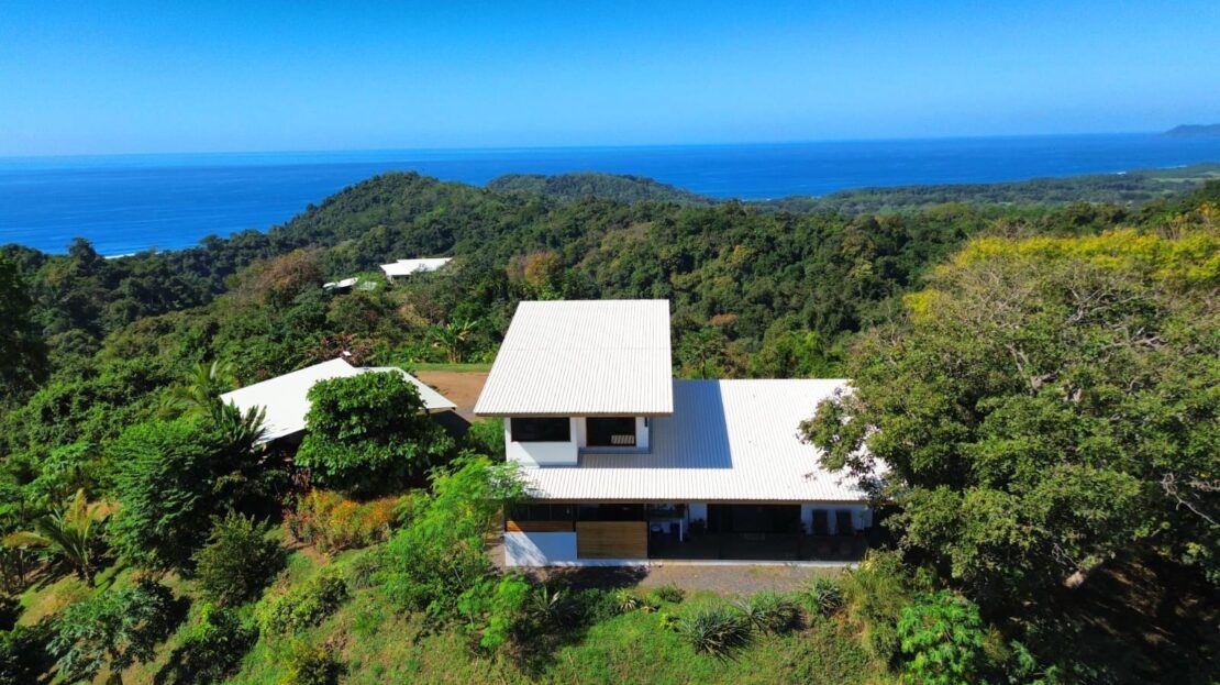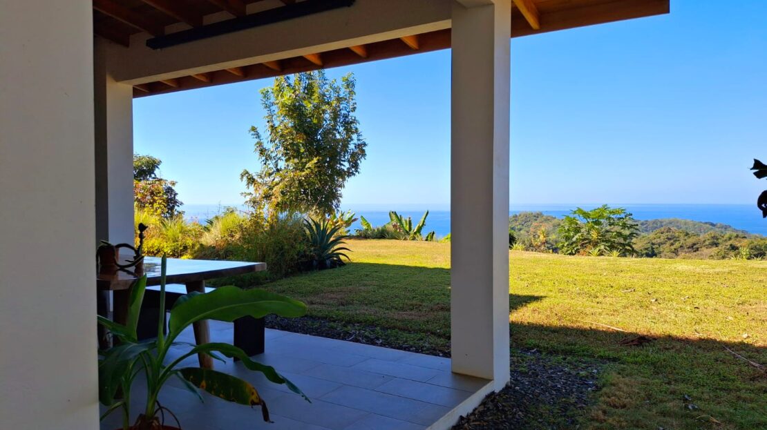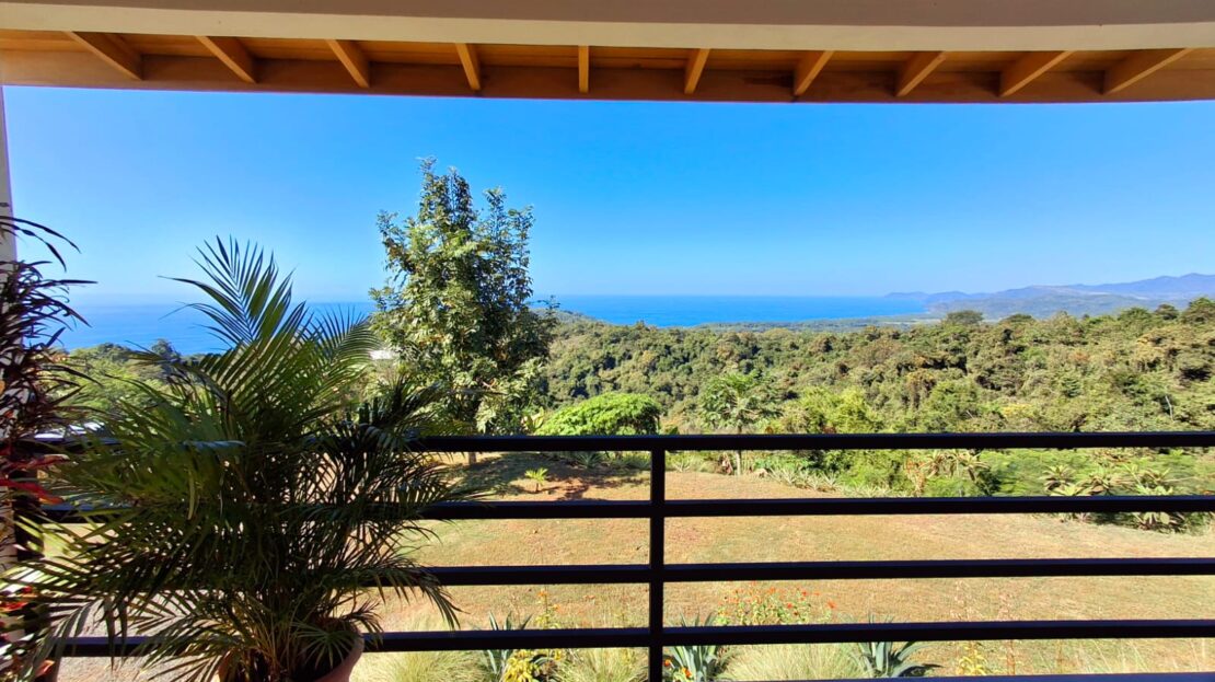 Set on top of a hill, the home enjoys uninterrupted 360-degree views. Sunrise and sunset, mountains, jungle, valley, and ocean—every direction offers something special. Thanks to its elevated position, a refreshing breeze flows through the house most of the time, enhanced by the open-concept design and large windows on both sides: mountains behind and wide-open ocean views in front.