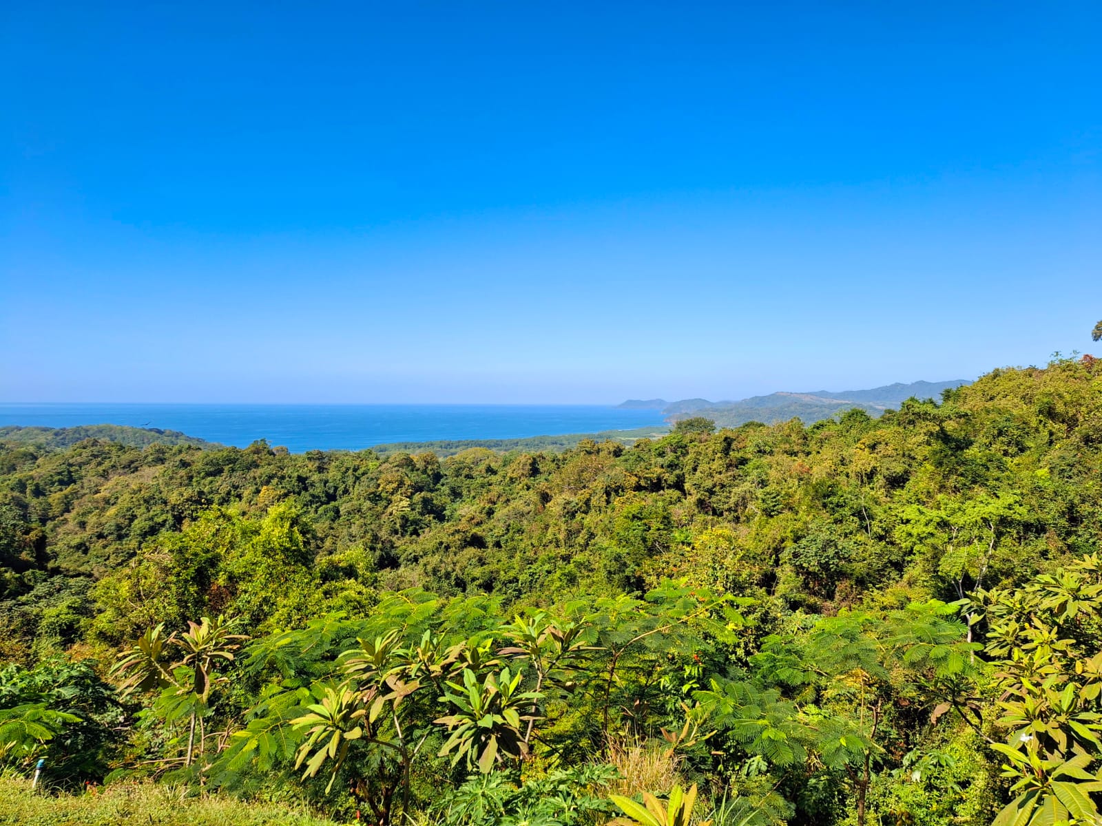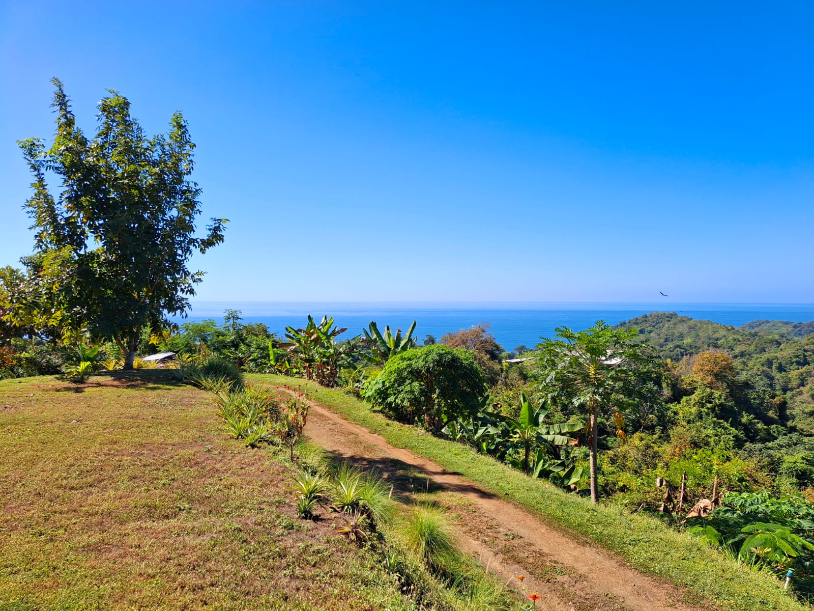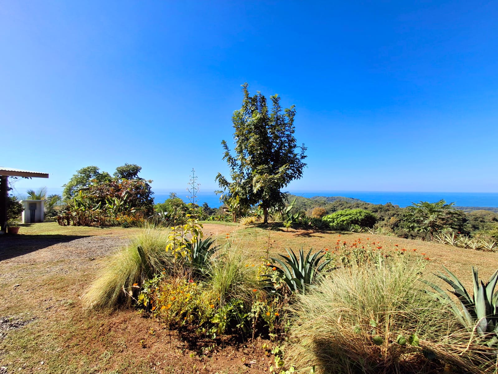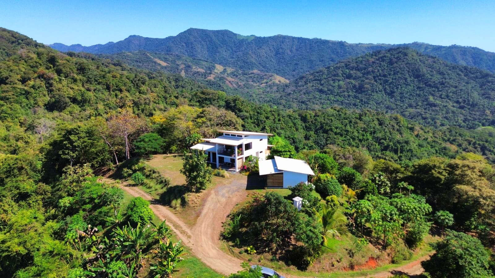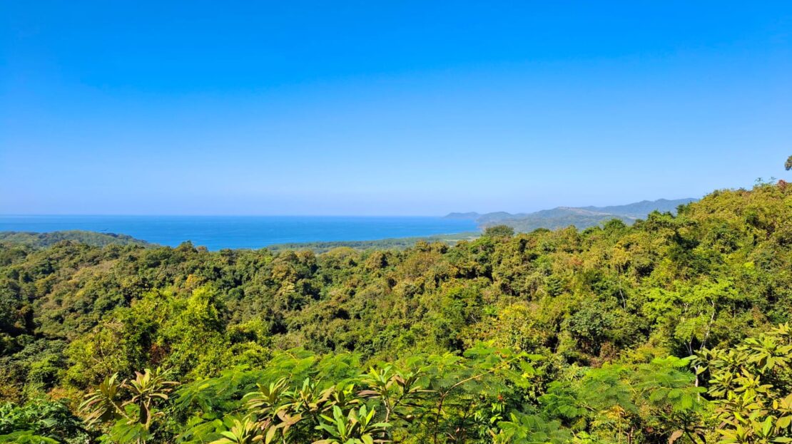 Set on top of a hill, the home enjoys uninterrupted 360-degree views. Sunrise and sunset, mountains, jungle, valley, and ocean—every direction offers something special. Thanks to its elevated position, a refreshing breeze flows through the house most of the time, enhanced by the open-concept design and large windows on both sides: mountains behind and wide-open ocean views in front.