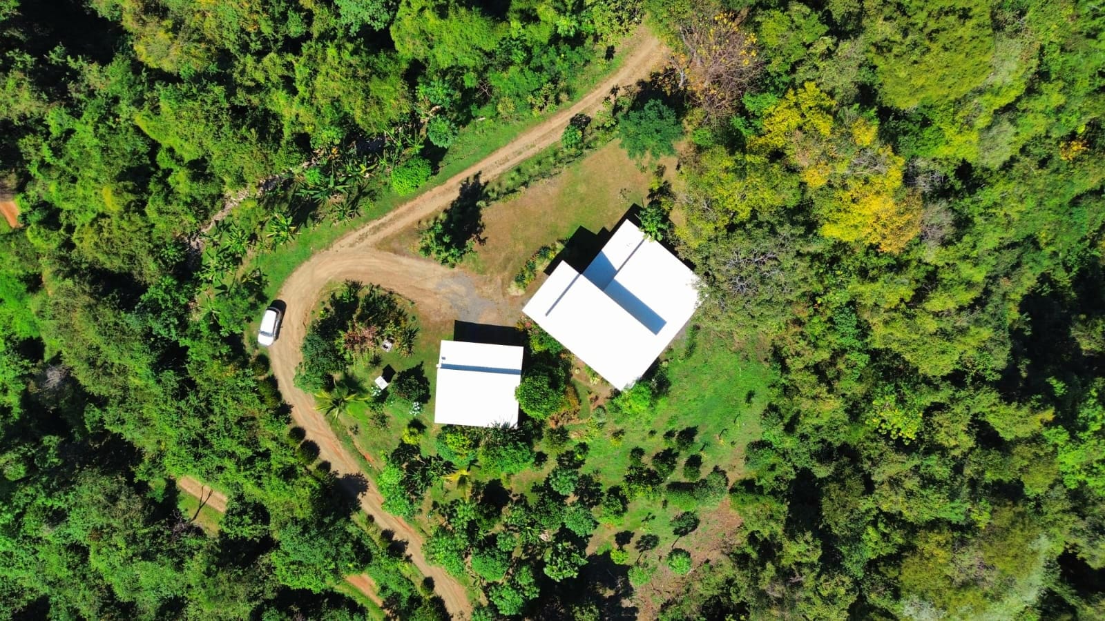 A covered parking area for at least two cars sits right next to the house, and the flat garden area in front offers ample space for adding a pool. Built in 2020, the home is solid concrete construction, thoughtfully designed and built to a high standard. Year-round access is possible, though a 4×4 vehicle is recommended.