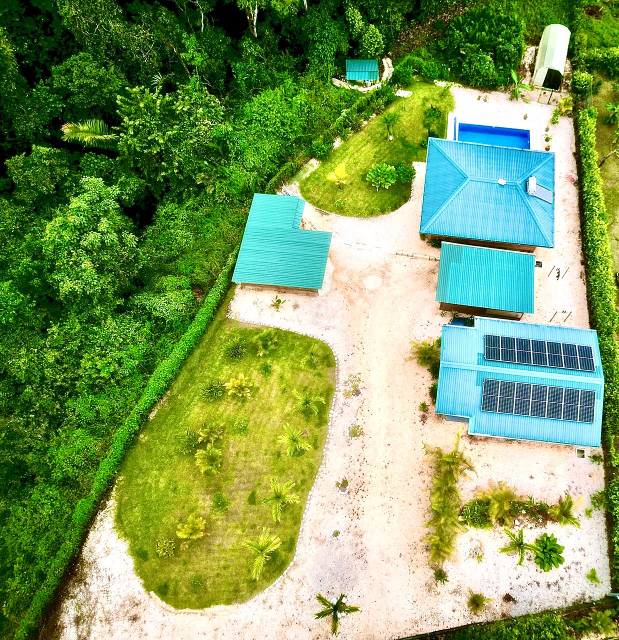 The garden is a living paradise, thoughtfully planted with palms, flowering shrubs for butterflies and hummingbirds, and young fruit trees including mango, lime, and mamon chino. A greenhouse allows you to grow your own plants and enjoy the satisfaction of harvesting from your own land. For pet owners, a 1,400 m² fully fenced area offers a safe and secure environment.