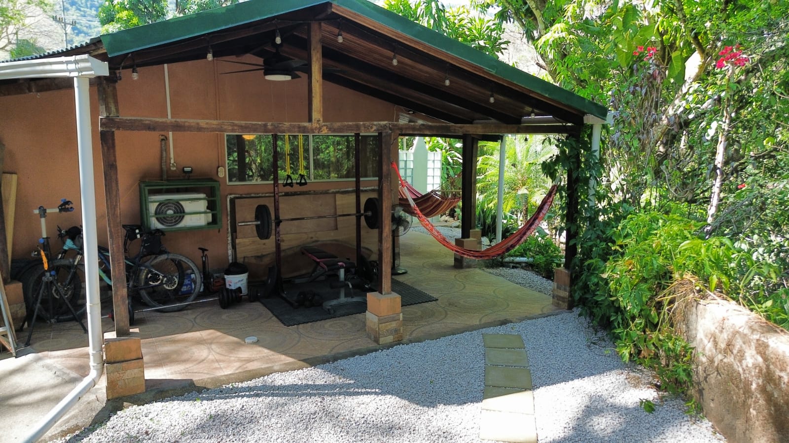 A laundry room and pantry add convenience, while the covered terrace at the back of the house includes a small personal gym area — perfect for staying active while enjoying the peaceful setting.