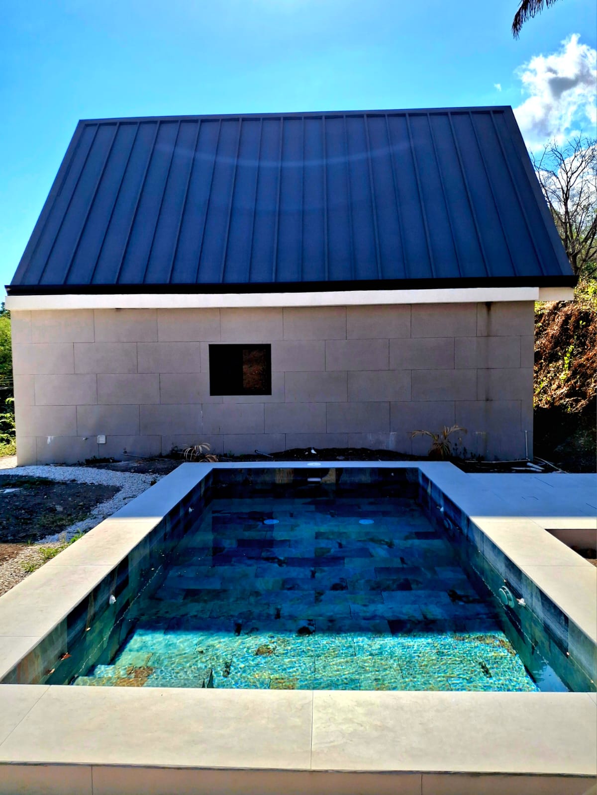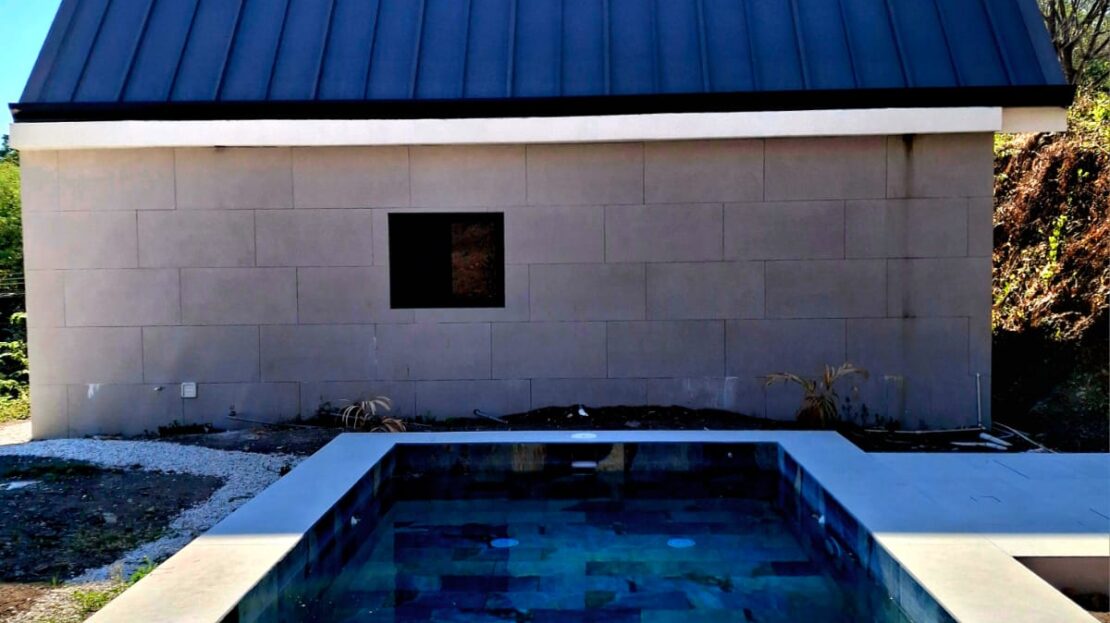 Beside the two homes, there is a refreshing swimming pool, perfect for relaxing after a day at the beach. At the lower part of the property, you will find a garage with space for 3 to 4 vehicles.