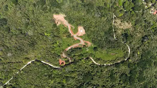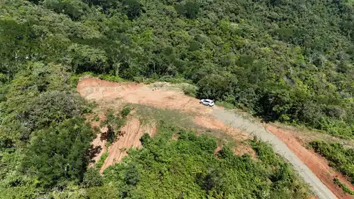 The land is ready to build, with three existing platforms already prepared. The main platform at the top is expansive and commands truly exceptional views in every direction. There is also the possibility to subdivide the property into additional lots, all with direct access to the public road. Internal roads and a solid bridge crossing a charming seasonal creek have already been completed, providing easy year-round access.
