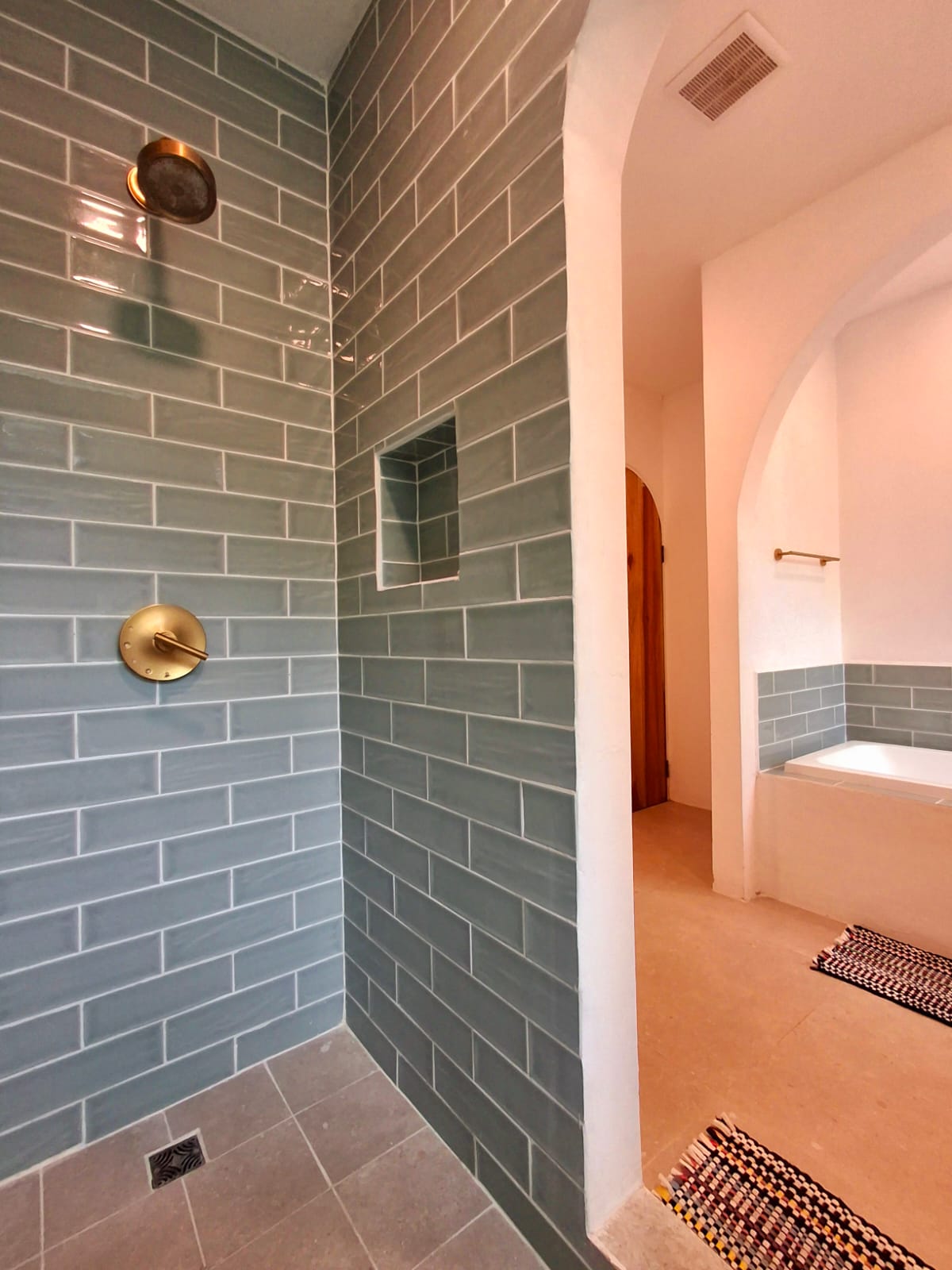 As you enter the house, you’ll find an open-concept living room and kitchen that flows directly to a spacious covered terrace overlooking the backyard—perfect for outdoor dining and relaxing. Along the right side of the house are two comfortable bedrooms with a bathroom in between.